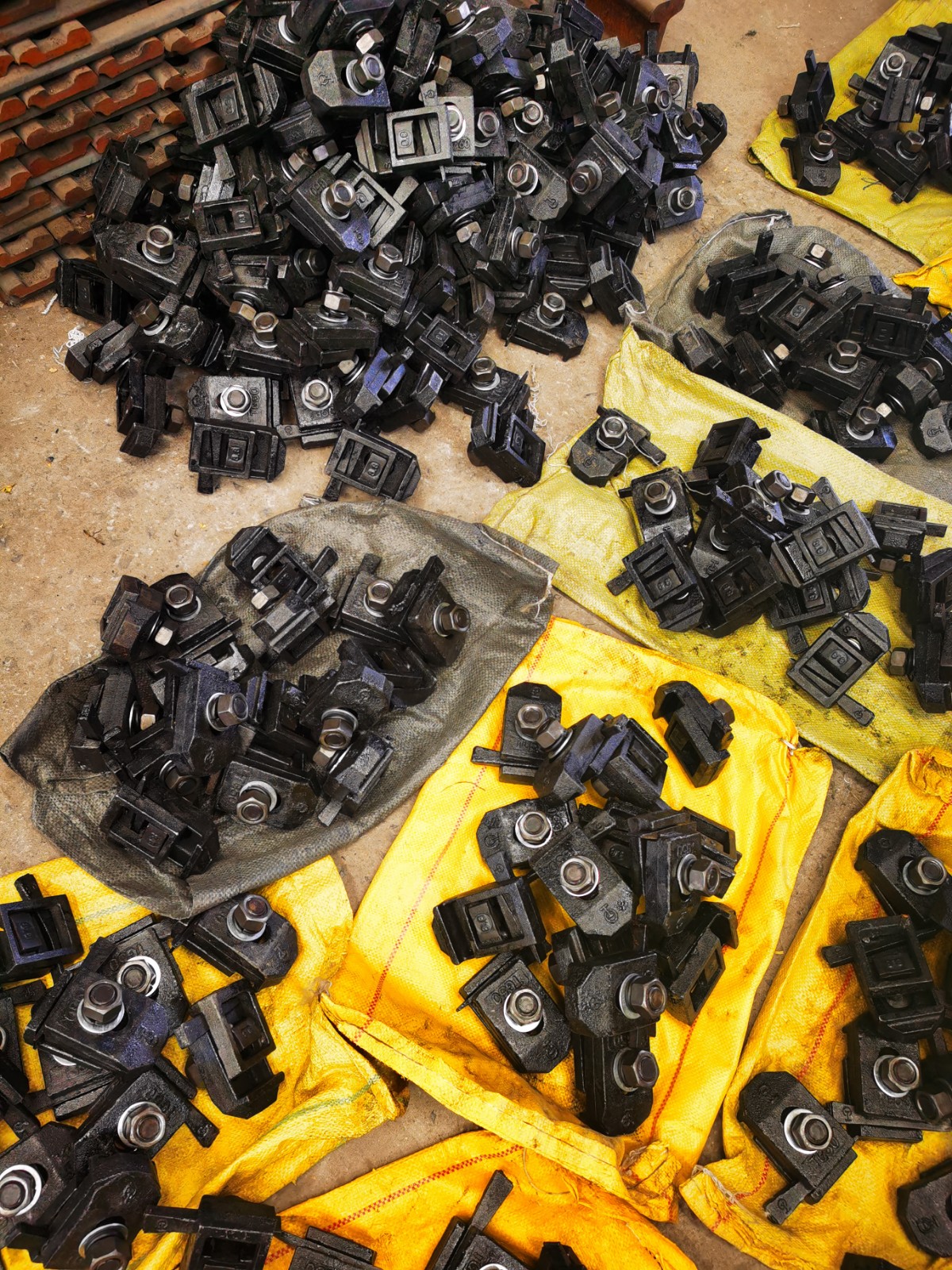新鄉市宏鑫工礦設備有限公司。生產銷售:各種軌道配件,軌道壓軌器,夾板壓板,魚尾板,道丁,雙孔圧板單孔壓安全滑線,單極滑線,無接頭滑線,新型單極,廠電13837336777 網: www.xxhxgk.com