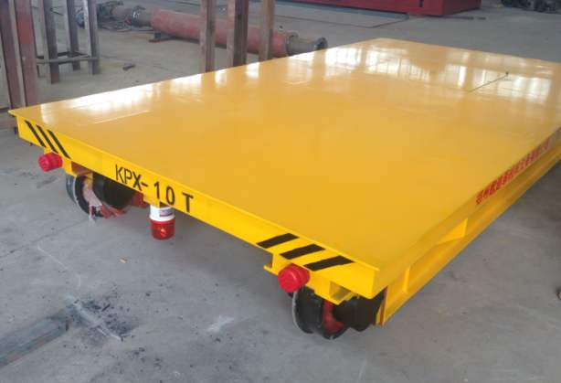 電動平車,又稱電動平板車、電平車、臺車、過跨車、電動軌道車、地爬車等,是一種廠內有軌電動運輸車輛,首先它是一種軌道型運輸車輛,需要在地面上鋪設軌道,軌道一般為工字型面接觸道軌;其次它是電驅動車輛,在電機減速機驅動下自動運行,再次它是一種平板車,臺面平整無廂蓋,特殊情況下也可以是非平面但無廂蓋,車體無方向盤只有前進后退方向(即使轉彎也城靠軌道轉彎)。此種車輛具有結構簡單、使用方便、承載能力大、不怕臟不怕砸、維護容易、使用壽命長等特點,因其方便、壯實、經濟、實用、易清理等諸多優點,成為企業廠房內部及廠房與廠房之間短距離定點頻繁運載重物的首選運輸工具。