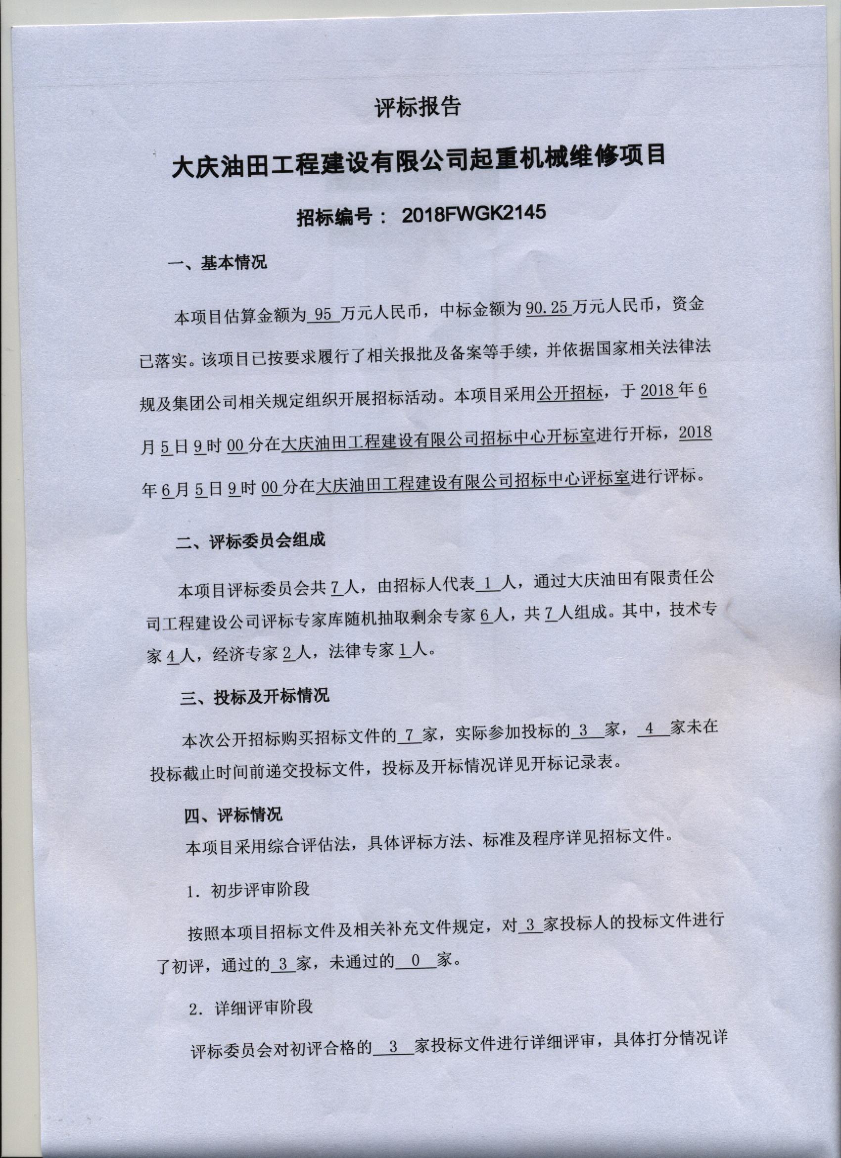 | 招標投標項目名稱: | 大慶油田工程建設有限公司起重機械維修項目 | ||||||||