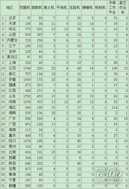 挖機區域排名:河南第一