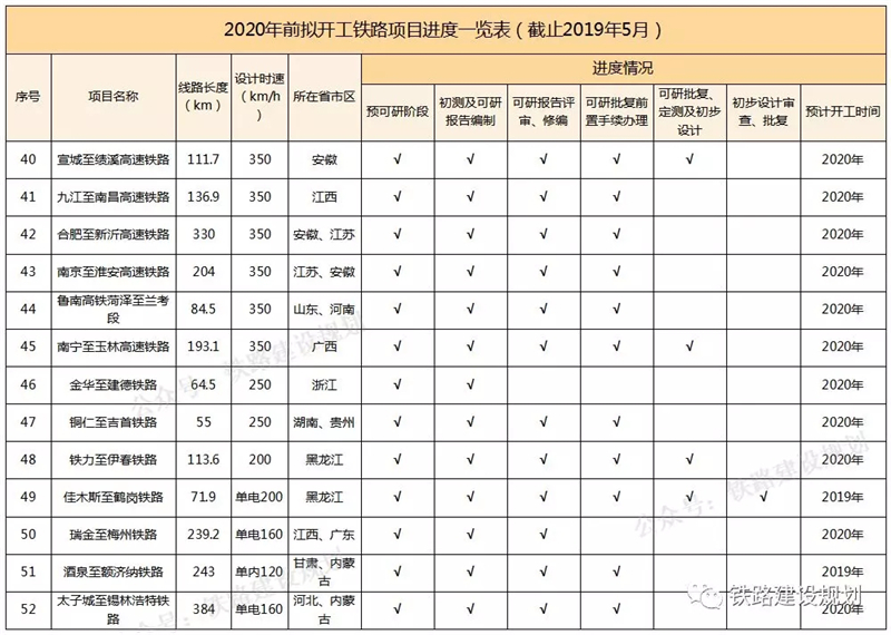 移動版:2020年前鐵路計劃開工項目一覽表!