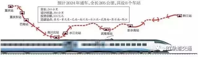 主要建設線路起自重慶站,經巴南、南川、武隆、彭水,終至黔江站,正線全長265公里,設站8座,其中新建6座。同步建設重慶東動車所動車出入段線、重慶樞紐東環聯絡線。項目投資估算總額為535億元,本項目由渝萬鐵路公司作為項目業主負責項目實施,項目建設工期5年半。