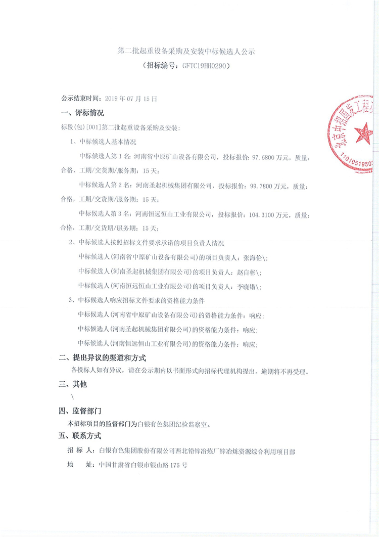 移動版:第二批起重設備采購及安裝中標候選人公示
