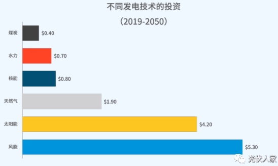 風能與太陽能的投資將分別達到5.3萬億美元和4.2萬億美元