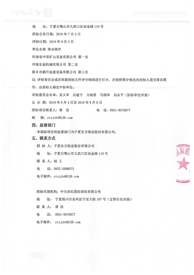 移動版:寧夏東方鉭業股份有限公司起重設備外協維修項目中標候選人排名公告