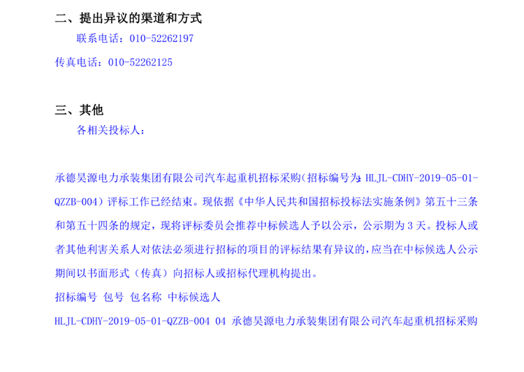 移動版:承德昊源電力承裝集團有限公司汽車起重機招標采購中標候選人公示