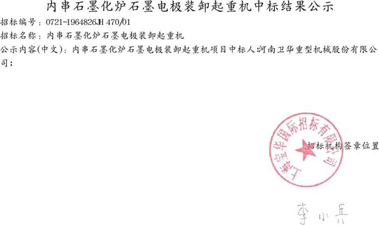移動版:內串石墨化爐石墨電極裝卸起重機中標結果公示