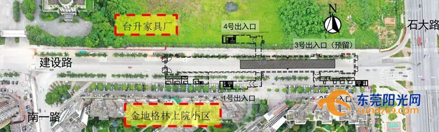 東莞市軌道交通1號線項目大嶺山東站位于建設路主路上,于9月6日正式動工。由于施工場地狹小,施工時需進行多次導改,導改需占用臺升家具廠空地、金地·格林上院小區人行道及停車位、以及建設路輔路。同時車站站位涉及地下管線眾多,包含高壓電力、給水、雨污水、天然氣、通信、路燈、交通信號等,施工期間需采取遷改、懸吊保護等措施分別處理,涉及各專業同時進場施工相互影響,組織協調難度大。車站上方現狀建設路可作為施工場地,道路疏解需占用臺升家具廠土地,由于該土地屬于臺資企業,導致征地難度較大。