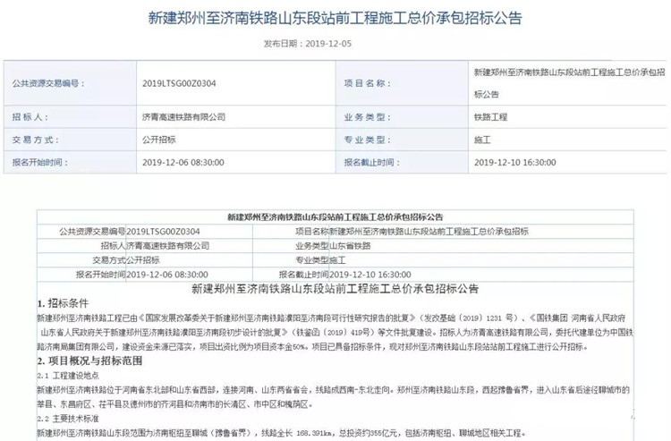 昨天,濟青高速鐵路有限公司正式發布了《新建鄭州至濟南鐵路山東段站前工程施工總價承包招標公告》,這標志著鄭濟高鐵山東段即將進入正式施工階段。計劃總工期4年,預計2020年1月開工,2023年底建成通車。