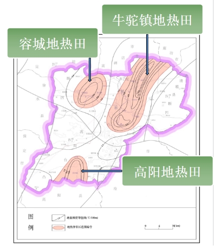 據了解,“雄安新區地熱清潔能源調查評價”項目,歸屬于“京津冀地熱資源調查評價與綜合開發示范”工程。項目周期為2018—2020年。主要目標任務是通過開展容城、牛駝鎮、高陽地熱田整裝勘查,圈定地下熱水開發利用靶區,研究深部基巖熱儲地質條件,評價深部霧迷山組地熱資源量,探索高于莊組地熱資源開發潛力。