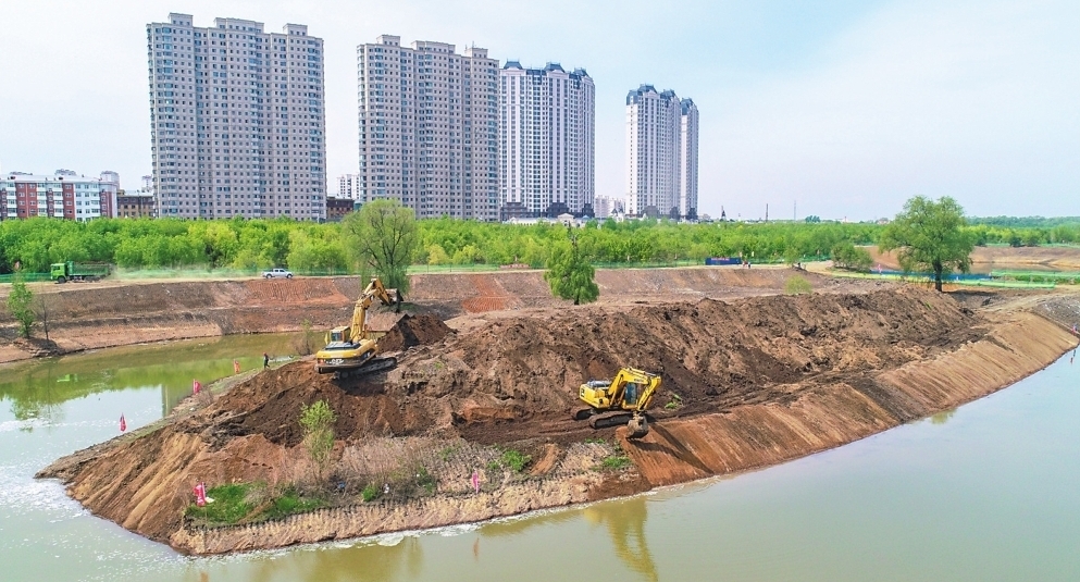 松花江南岸生態修復工程施工現場。陳志偉 記者 劉億服 攝