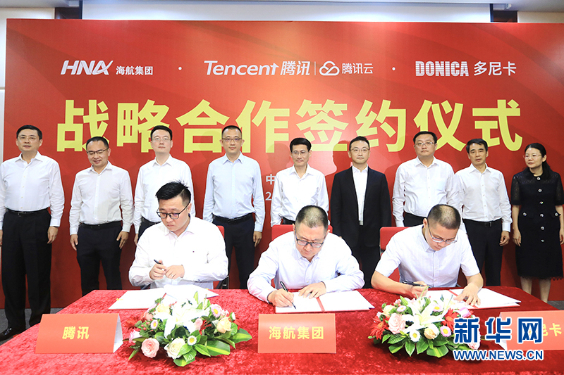 6月16日,海航集團有限公司與騰訊計算機系統有限公司、多尼卡航空電子有限公司在??谂e行戰略合作協議簽約儀式。三方將通過高標準、高質量的建設和運營,打造“智慧航空+自貿港”,創新推動高新技術全面應用,以實際行動為海南自貿港產業創新發展、為“智慧海南”建設貢獻力量。