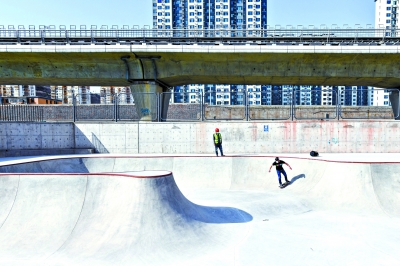 其中,滑板場地包括熱身區、街式區、碗池區,可滿足國際級專業比賽項目,也將面向滑板和輪滑愛好者開放,還能開展小輪車、平衡車等運動項目。記者在現場看到,街式比賽區的臺階、大圓筒圓桿等障礙物已經設置完畢,波浪形狀的賽道向遠處延伸,技術好的“板仔”可以一口氣滑下來繞場一周。“嗖嗖”聲中,測試人員在滑板上騰空躍起,用一個個高難度空中動作進行碗池比賽區的驗收工作。