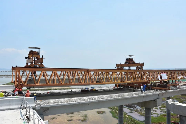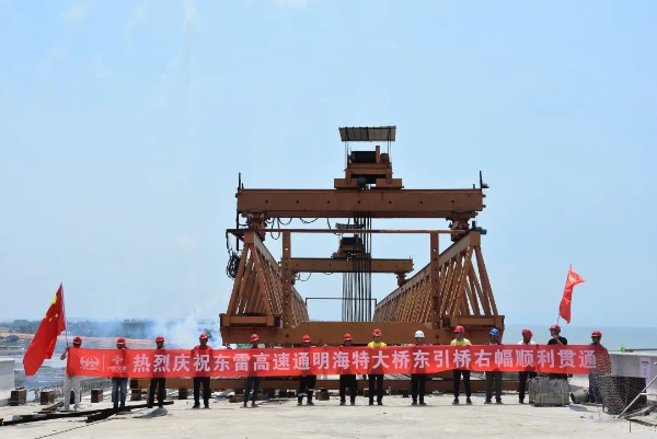 6月23日,隨著最后一片25米寬幅小箱梁架設完成,東雷高速通明海特大橋實現了右幅半幅貫通。此次大橋半幅貫通連通了雷州半島與東海島之間的海上通道,為東雷高速的路面工程施工創造了有利條件,將有效提高項目建設效率。