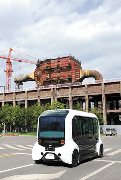 “智能熊貓巴士”無人駕駛公交車亮相江蘇常州國際會展中心。 人民視覺