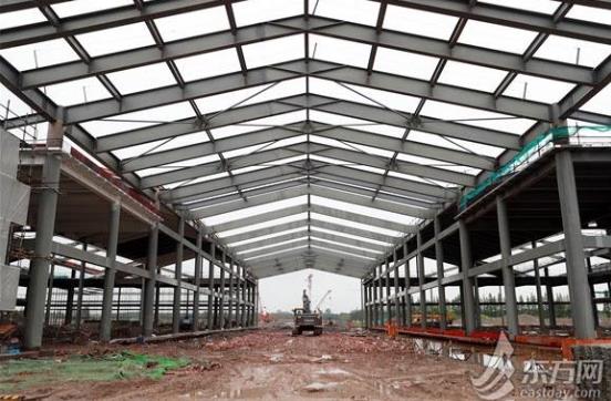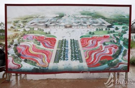 雖然公眾開放日當天下起了大雨,但并沒打亂花博會施工現場的工作進度。記者在復興館看到,場館已經初現雛形。據施工方相關人員介紹,復興館是花博會“六館”之一,總面積36000平方米,采用中國古典坡屋頂和柱廊為架構,已經完成結構封頂,現在正在進行二結構施工。