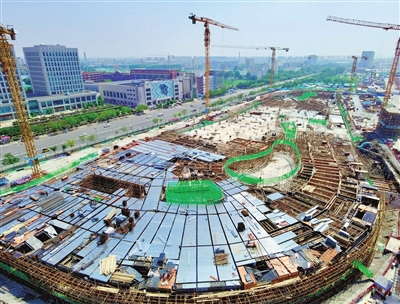 昨天,我市重點服務業建設項目──東麗區萬達廣場地下部分施工全部完成,正式進入地上主體施工階段。項目位于津塘二線(先鋒東路)以南,總體量約合14.01萬平方米,預計明年投入使用。(來源: 天津日報 張磊攝)