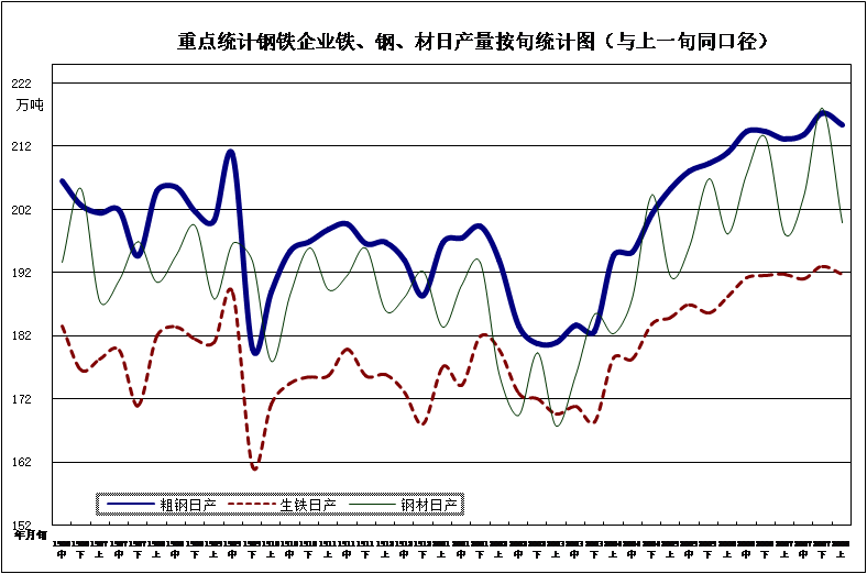 [1]因企業重組,河北縱橫自本旬起從統計樣本中剔除。若按本旬口徑,本旬生鐵、粗鋼日產量分別比上一旬增長0.41%、0.12%。受鞍鋼集團ERP取數原則和部分企業月底集中入庫等因素影響,本旬鋼材產量相比上一旬減少較多;按本旬口徑,并剔除這些影響因素,本旬鋼材日產量相比上一旬減少4.0%。