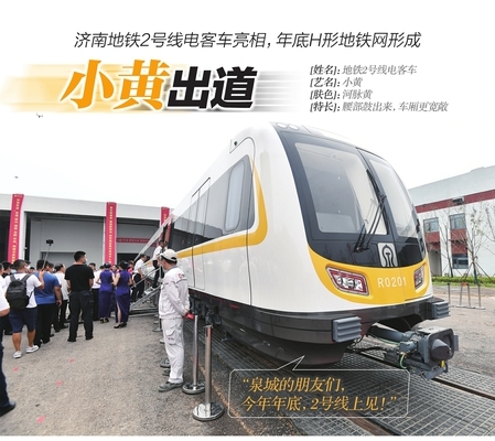 濟南地鐵2號線列車"小黃"亮相 年底形成H形地鐵網