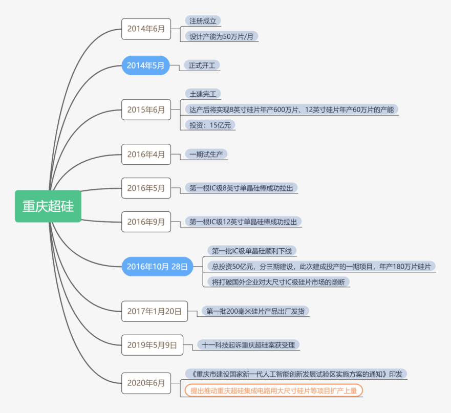 2014年5月,重慶超硅投資建設的“極大規模集成電路用300mm(含200mm)單晶硅晶體生長與拋光硅片及延伸產品”項目正式開工。