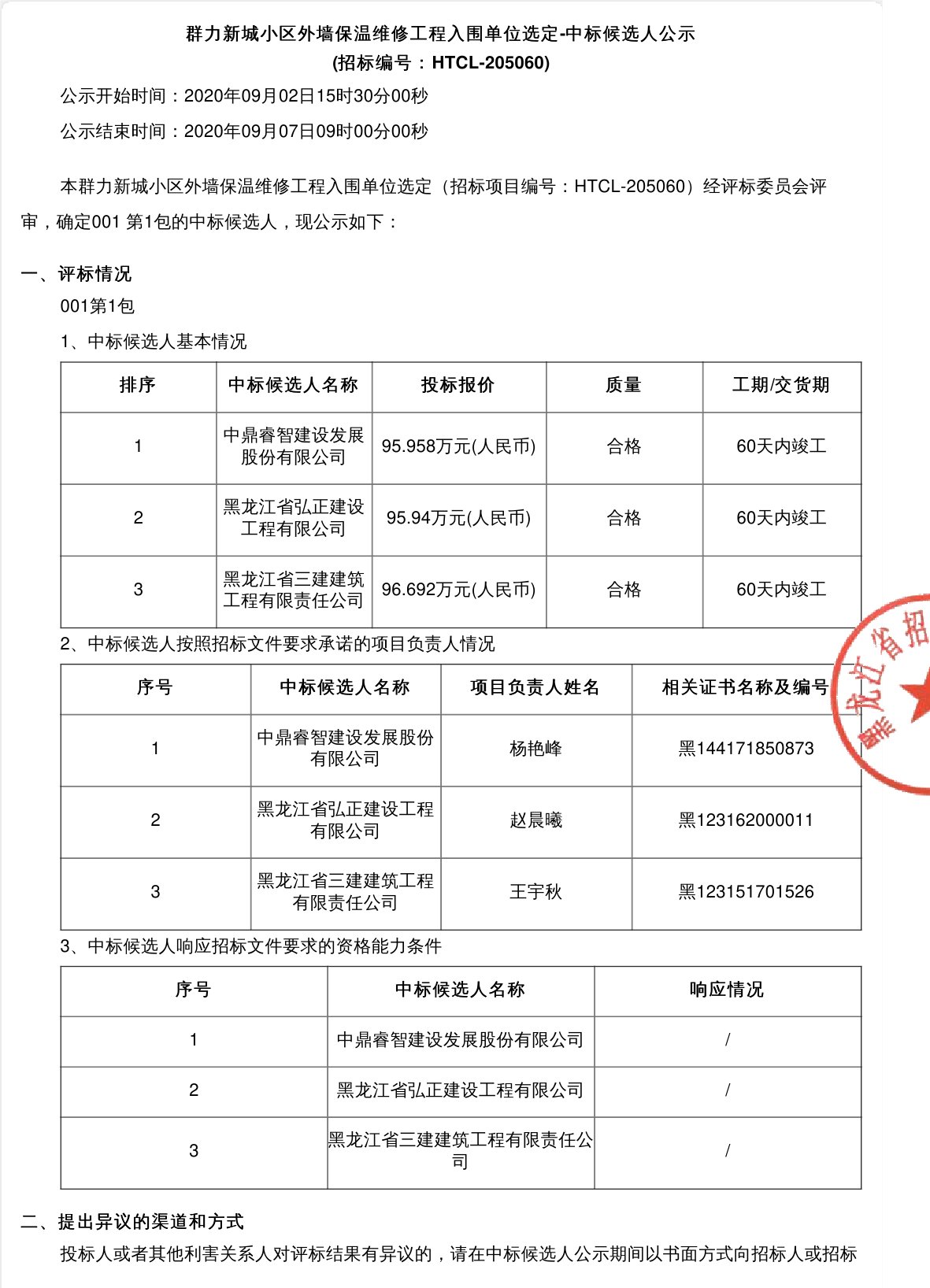 移動版:群力新城小區外墻保溫維修工程入圍單位選定-中標候選人公示