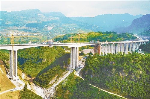 近日,由中鐵十七局集團承建的昭瀘高速公路中場河特大橋右幅中跨順利合龍。中場河特大橋為昭瀘高速公路項目6個控制性工程之一,橋梁單幅全長897米,是昭瀘高速公路全線跨度最大的連續剛構橋。橋梁跨越百米深溝,橋面距離溝底最深處150米,最高橋墩63米,最大懸澆節段混凝土重220噸,施工安全及技術難度大。