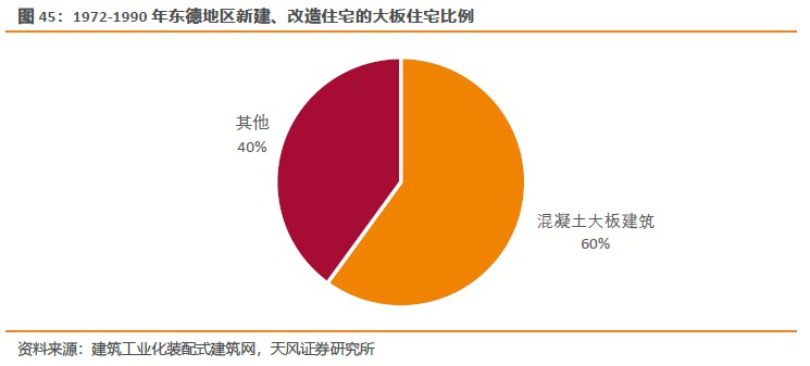 在1972-1990年大規模住宅建設期間,東德地區新建、改造共計300萬套住宅,其中180-190萬套用混凝土大板建造,占比達60%以上;東柏林地區1963-1990年間共新建住宅27.3萬套,其中大板住宅達到了93%。