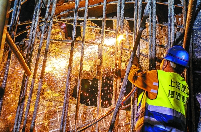 工人拆解鋼筋,等待盾構機貫通。孟雨涵 攝