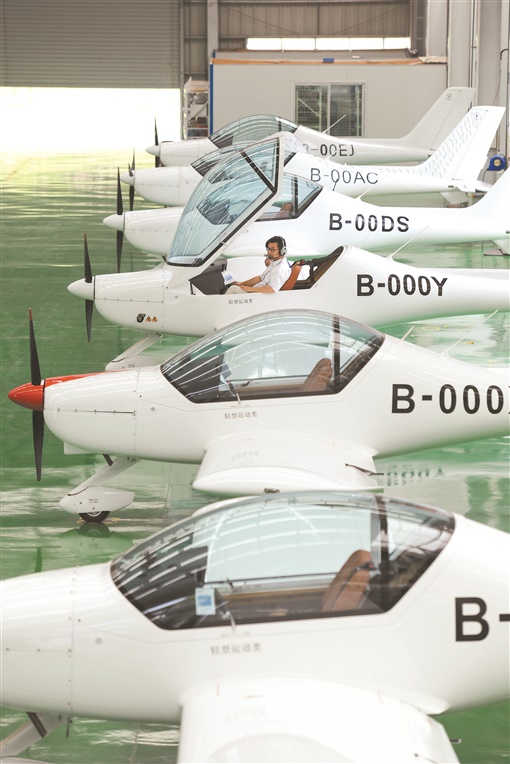 位于株洲的湖南山河科技股份有限公司,山河SA60L(阿若拉)整裝待飛。該飛機是由湖南山河科技自主研制的單發雙座輕型運動飛機,其飛行性能、安全性均達到國際先進水平,是我國第一款通過中國民航適航認證的民族品牌輕型運動飛機。湖南日報·華聲在線記者 辜鵬博 攝