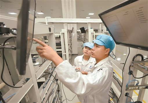 9月14日,湖南湘江新區湘江鯤鵬計算產業軟硬件生產線,工人在對PC機拷機進行測試。目前,該生產車間的湖南自主品牌服務器和PC機的日產能分別達到300臺、1000臺。
