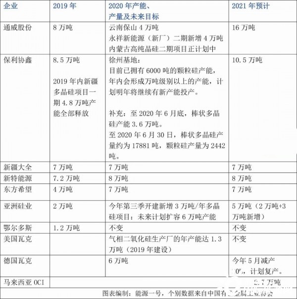 (上圖為各大多晶硅廠商產能進展,僅供參考)