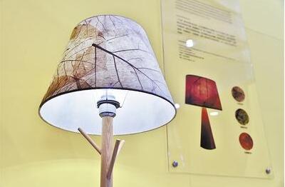 9月17日,第三屆河北國際工業設計周河北工業設計成果展區內展示的一款用樹葉制作的燈具。河北日報記者趙海江攝