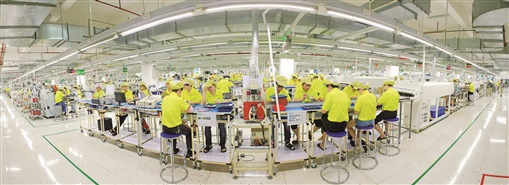 郴州臺達電子有限公司生產車間里機器飛轉、工人忙碌。臺達電子公司是郴州市十佳外向型經濟企業之一,2007年落戶該市,主要生產電子零件、風扇、變壓器、網絡元器件等。目前,公司有員工3400余人,年銷售額達10億余元,年創稅收超3000萬元。 李科 攝
