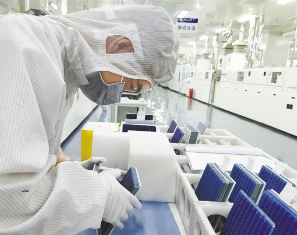 工作人員正在測試分揀電池組件。賈泓 鄭思哲 攝