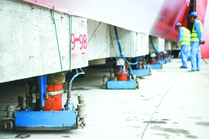 裝上步履行走器,老建筑有“腳”可行走。均 記者 海沙爾 攝