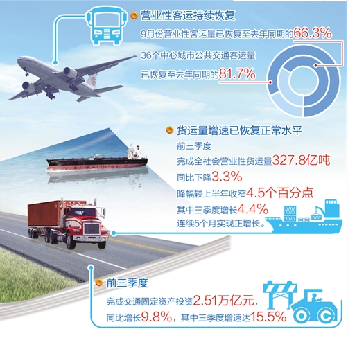 據介紹,前三季度交通運輸業總體呈現“先降后升、趨于正常”的運行態勢。目前,交通運輸業正加快步入原有發展軌道,部分領域已補齊缺口。