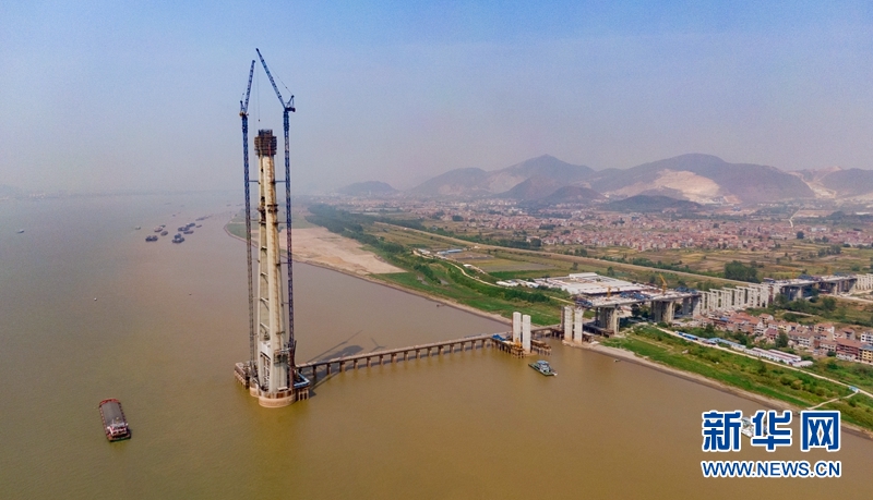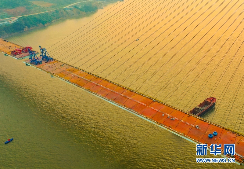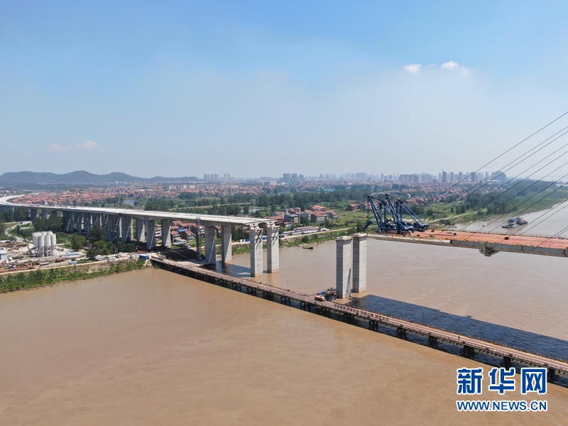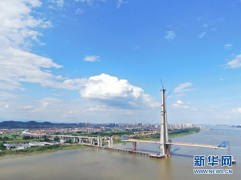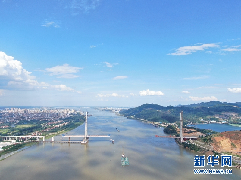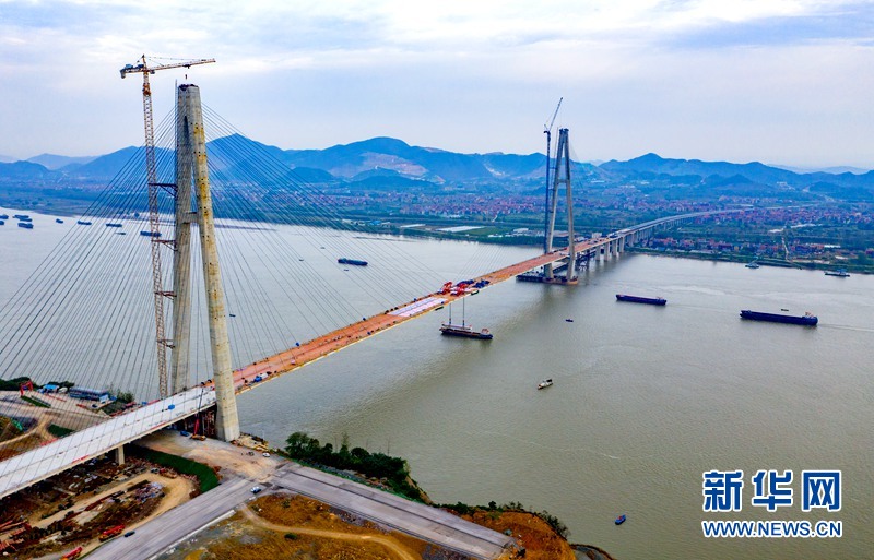 武穴長江大橋跨越黃岡武穴市和黃石陽新縣之間的長江水域,是湖北省麻城至陽新高速公路的組成部分,大橋連接線北接滬渝高速,南銜杭瑞高速。大橋及連接線全長約31公里,其中長江大橋主橋1403米,主跨808米,雙向6車道,設計速度100公里/小時,在同類型斜拉橋中排名國內第七。(趙夢琪 柳志鵬 黃馬杰)