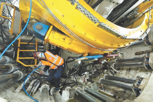 地鐵3號線一期首臺盾構機始發。記者 程功攝