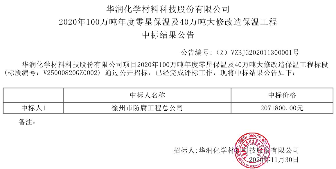 移動版:2020年100萬噸年度零星保溫及40萬噸大修改造保溫工程中標結果公告
