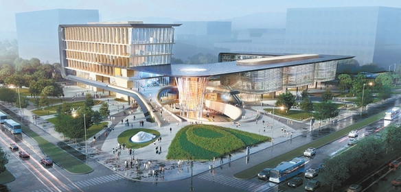 記者注意到,和常見的封閉式綜合交通樞紐不同,東夏園綜合交通樞紐在設計上更突出開放性,不僅將建筑朝向街角方向打開,還設置了屋頂花園、綠化平臺等立體空間,讓開放的建筑與周邊城市環境形成順暢過渡,令綜合交通樞紐融入城市環境之中。