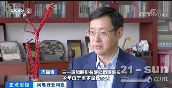 三一集團董事、三一重能董事長周福貴:今年風電行業發展迅速,前三季度我們的出貨量比去年同比增加3倍。