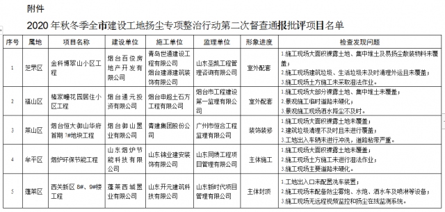 原標題:煙臺市隨機抽查34個建設施工現場,13個被通報批評(附名單)