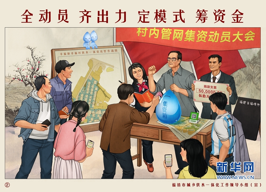 不僅是通過直觀生動的插畫,在推進城鄉供水一體化建設過程中,福清還大量制作橫幅、傳單、宣傳手冊等,在微博、微信、短信、廣播等線上和線下渠道,用村民聽得懂的直白話、看得懂的圖形標、算得清的戶均賬進行廣泛宣傳,做到全民知曉、全民參與。