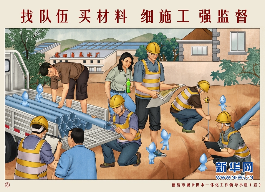 找隊伍 買材料 細施工 強監督。新華網發(福清市供水辦供圖)