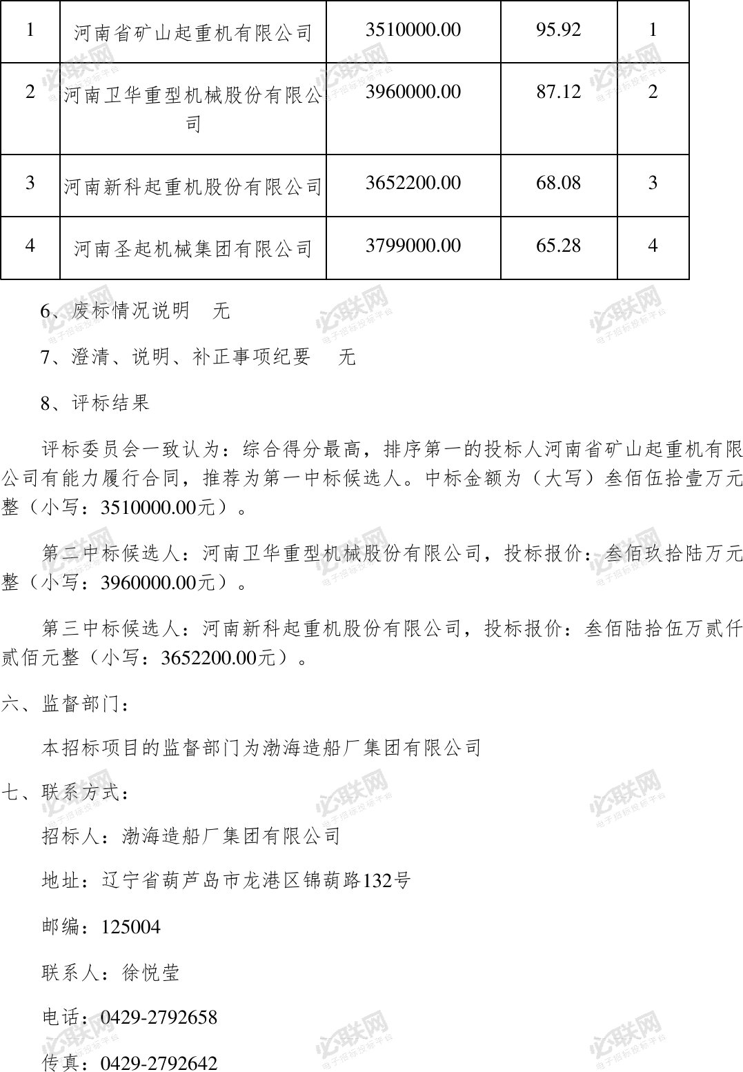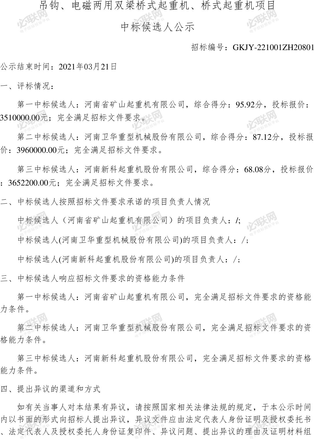 移動版:遼寧:吊鉤、電磁兩用雙梁橋式起重機、橋式起重機項目招標評標公示