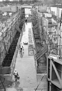 來自金河水務的宋國雨,是甘棠船閘建設的現場負責人。“為了提高地基承載力,1萬多平方米的基坑里打下了將近4000根碎石樁,按照設計方案,建成甘棠船閘將用掉約2.7萬立方米混凝土和1500噸鋼筋。”參與水務工程建設20來年的宋國雨說,像甘棠閘這樣體量的工程,正常情況下需要一年的工期,但為了盡快竣工通航,項目部經過反復論證,決定將工期縮短至8個月。