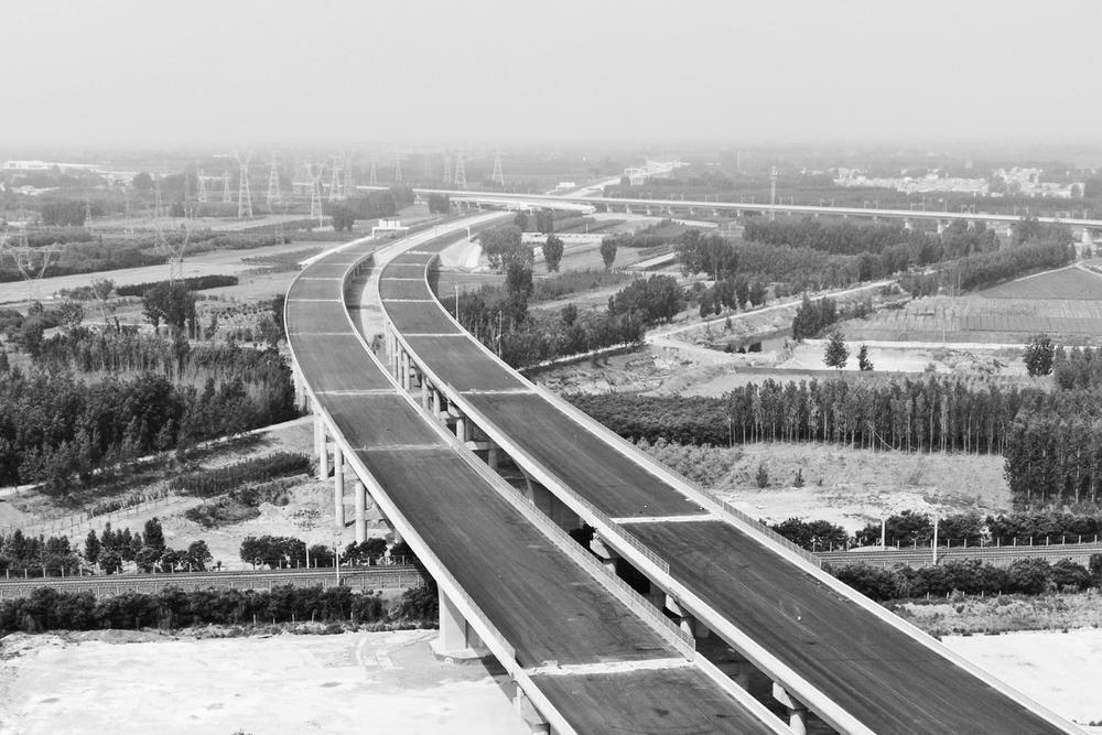 雄安新區首座上跨京九鐵路雙幅轉體橋創造了我國轉體橋施工多項第一: 轉體橋與京九鐵路交叉角度最大——橋面單幅寬為20.83米、長130米,左、右幅橋梁與京九鐵路交叉角度為85度;是雄安新區轉體重量最大的雙幅轉體橋——左、右幅主橋轉體重量均為9700噸;該橋位于半徑為3000米的平曲線上,縱向最大坡度2.6%,是我國雄安新區首座上跨京九鐵路的雙幅轉體橋,也是雄安新區對外骨干路網第一座高速公路轉體橋;在上跨京九鐵路轉體橋中,首次采用實心花瓶式橋墩,成為上跨京九鐵路的一道風景線。