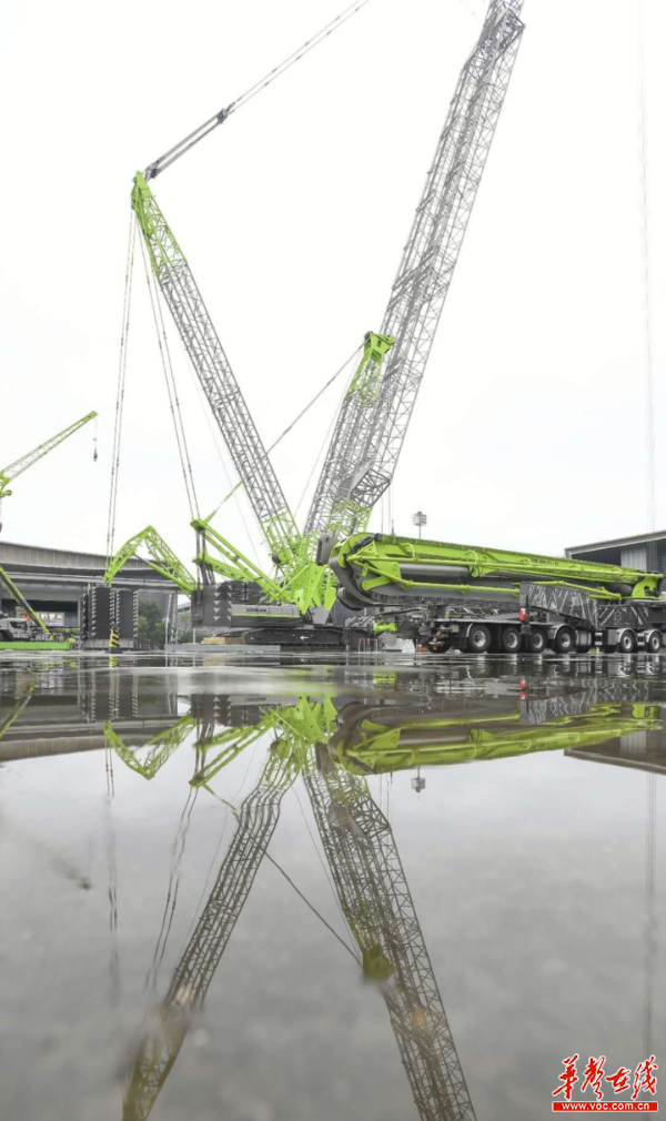 會展中心的中央廣場上,一臺高178米、額定起重量220噸的“巨型鐵獸”成為本次展會的“鎮館之寶”。這臺來自中聯重科的ZCC13000履帶起重機是第一個進入展館的參展產品,由40多臺平板車同時裝運進來。