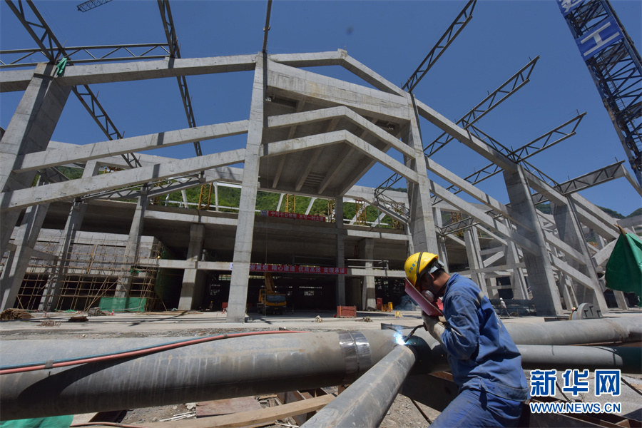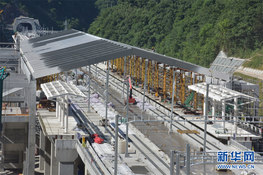神農架站站房主體框架結構全面封頂。新華網發 喻杰 攝