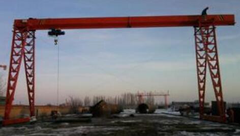 花架式門式起重機與CD、MD等型號的電動葫蘆配套使用,是一種有軌運行的中小型起重機,其適用起重量5~10噸,適用跨度為12~30米,工作環境-20攝氏度~+40攝氏度內。